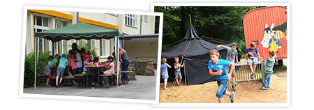 21.07.2015 – Ich spiele gerne draußen. Zum Entspannen gibt es das schwarze Zelt. Heute haben wir auch viel gemalt.