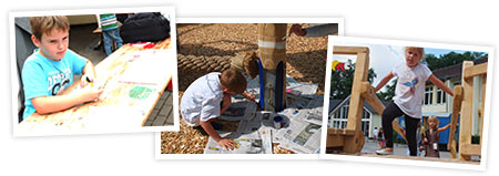24.07.2015 – Wir sind angefangen die Arche zu bemalen. Erst wurde mit Kreiden vorgemalt, dann haben wir das schön bunt gemacht.
