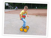 23.07.2015 – Heute konnten wir einfach spielen und toben. Und vorgelesen wird uns auch oft. Ich habe grad mal diese Rolldinger ausprobiert, es ist aber ganz schön schwer da nicht umzufallen. Ich übe einfach weiter, vielleicht kann ich dann bald Skateboard fahren.