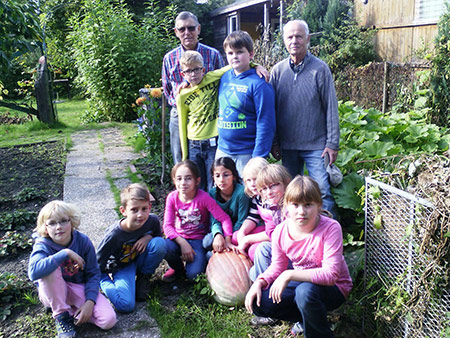 Die Garten-AG der OGS an der Äckernschule Bork traft sich am 29. September 2015 zum letzten Mal in dieser Saison: um Kartoffeln, Möhren und Äpfel zu ernten und um den zum Wettbewerb angemeldeten Kürbis zu messen.